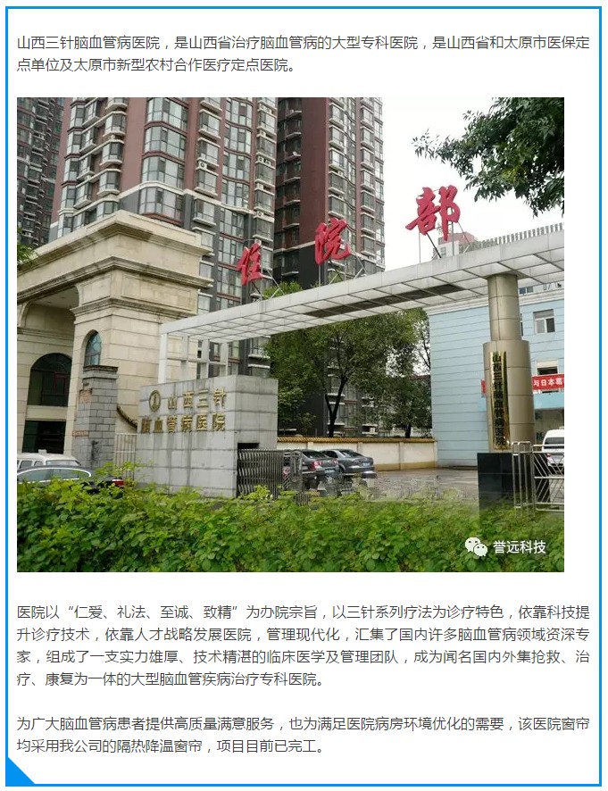 【案例】营造舒适康复环境!山西三针脑血管病医院安装我公司隔热窗帘