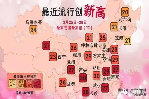 中央气象台预计,今天中东部几乎全线升温,不仅新疆南疆盆地、西北地区东部、华北中南部一直到华南大部最高气温几乎都会超过20℃,而且东北三个省会级大城市也将齐刷刷的上20℃,这在3月都是非常少见的,也将是有气象记录以来最早达到20℃的一年。