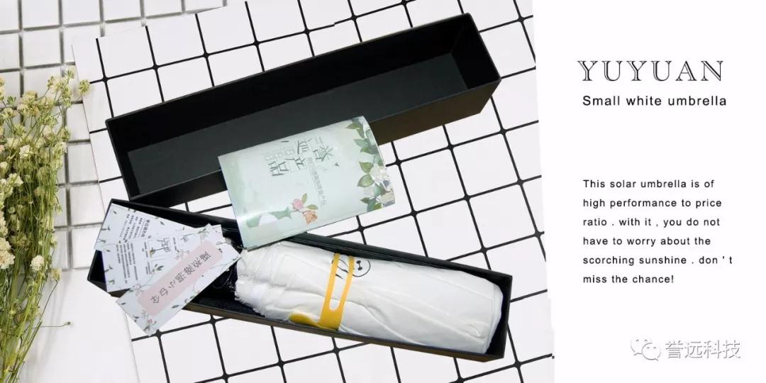 纯白的防晒伞,静静地躺在纯黑哑光的礼品盒里,等待着你开启惊喜;对比强烈的颜值,怎么拍、怎么撑着都美,它不会夺取你衣着的亮点,只会为你增添高级感的优雅气质,绝对是喜欢INS简约风小伙伴们的心头好!