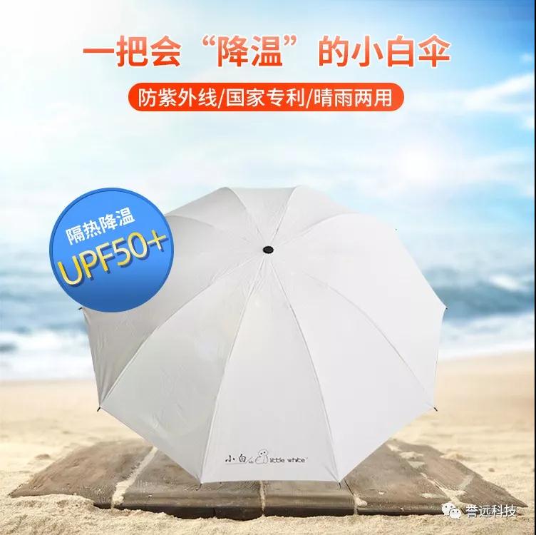 新一代的小白伞我们依旧采用的是国家专利技术的隔热降温涂层,能有效抵挡紫外线和红外线,阻隔太阳的热辐射,降低伞和伞下温度,庇护您安然度夏,不惧晒黑!