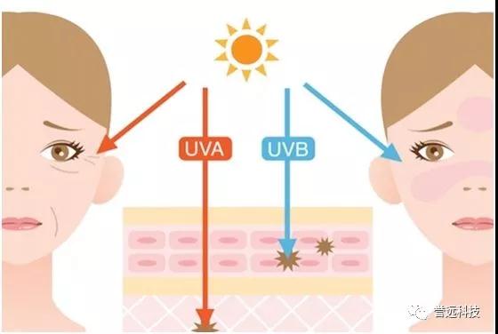 紫外线中的UVA ,波长大于 UVB ,UVB 会让你晒伤晒红,而UVA则能够渗透皮肤,直接把人晒老。