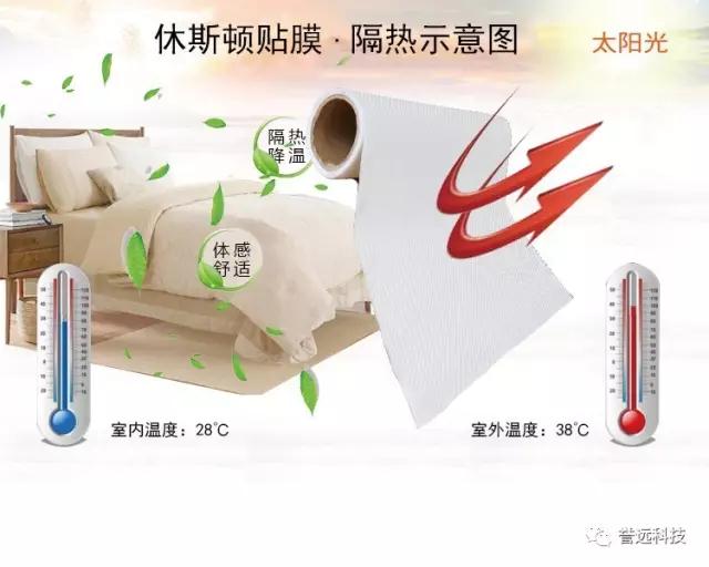 誉远隔热降温贴膜,能够达到80%紫外线阻隔率,以及90%红外线阻隔率,通过将红外线和紫外线反射出去,从而达到有效隔热的效果。