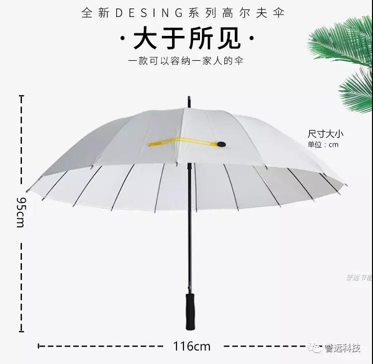 更大的伞面,遮挡全身,穿着短裤短裙也不怕腿脚晒黑;自动开关一按即可完成开伞或收伞,使用更方便!结实的伞骨降低了遇到大风被折损的概率,同时晴雨两用还不用顾虑防晒涂层被雨冲刷掉而失去防晒效用,使用寿命更长!