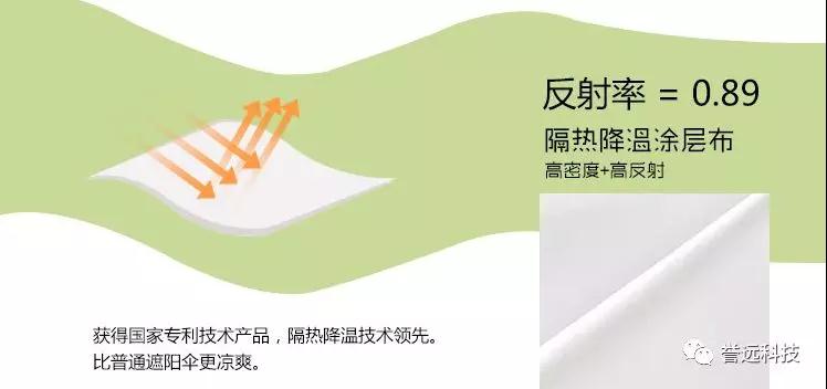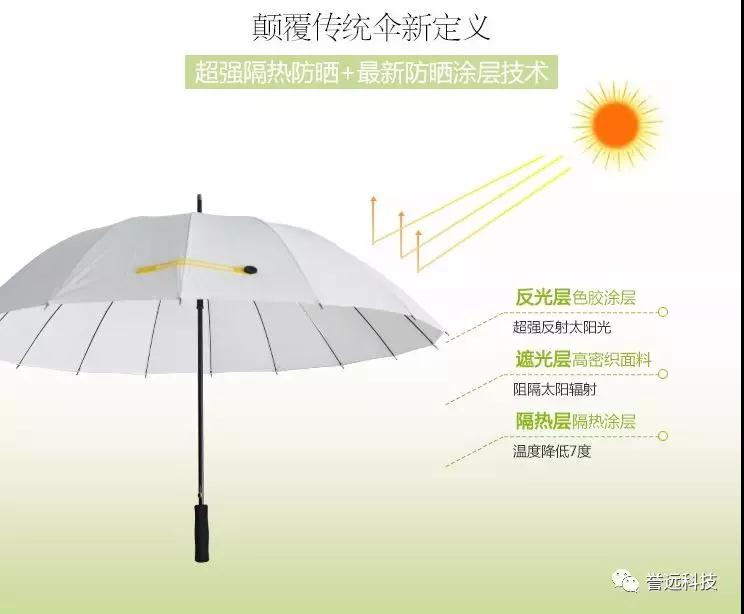 隔热降温伞采用太阳热辐射管控的国家专利科技,纳米级隔热降温材料制成,同样具备对抗炎炎夏日的超强战斗力!它能帮助你阻挡80%以上的紫外线照射,可以有效阻隔太阳热辐射,真正做到了一撑开伞,伞下一片清凉,庇护你远离夏日炙热,自然降温,贴心呵护健康!