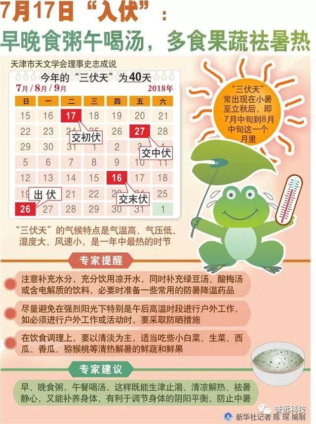 今年三伏天长达40天,可谓是超长待机!具体初伏、中伏、末伏时间如下: