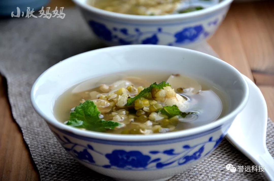 制法:以上五豆清洗浸泡后加水适量,大火煮沸后,小火续煮1小时左右,加入薄荷再煮5分钟,放温后代茶饮。