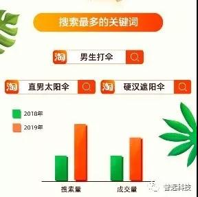 这个夏天,男生们已经逐渐放下“直男的矜持”,开始实现打伞自由。淘宝数据显示,从5月起,关键词“直男太阳伞“、“硬汉遮阳伞”的搜索量较去年增长102%,成交量同比增幅达75%。