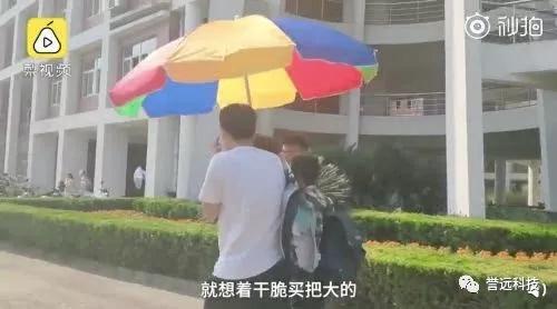 一把摆摊伞,已经是钢铁直男在大夏天的最后坚守了。撑摆摊伞的四个男生来自中国计量大学,是一间寝室的室友,他们解释说,最近上课路上太晒太热了,想买一把伞打,但又怕路人说男生打伞太“娘”了,于是干脆在网上买了一把巨大的伞,还能跟室友一起打。没想到成为了大家关注的焦点,走在路上还会被拍。